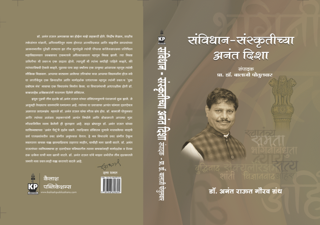 पीपल्स कॉलेज, नांदेड येथील मराठी विभागाचे प्रमुख आणि संविधानवादी साहित्यप्रवाहाचे अग्रणी विचारवंत प्रा. डॉ. अनंत दादाराव राऊत यांच्या सेवापूर्तीनिमित्त आयोजित ‘संविधान-संस्कृतीच्या अनंत दिशा’ या गौरवग्रंथाचा प्रकाशन सोहळा रविवार, दि. 12 ऑक्टोबर रोजी सकाळी 11 वाजता कै. नरहर कुरुंदकर सभागृह, पीपल्स कॉलेज येथे होणार आहे.